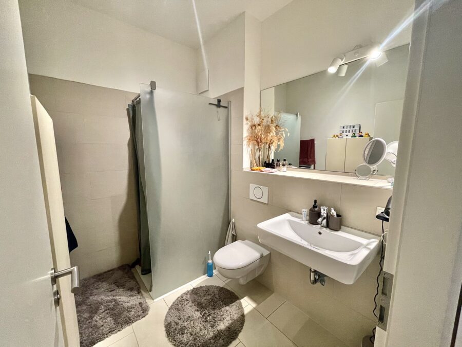 Diese geräumige Erdgeschoßwohnung verfügt über eine offen gestaltetet, hochwertige Komfort-Einbauküchen mit einem Cerankochfeld, Backofen, Umlufthaube, sowie eine Kühl-Gefrierkombination. Alle Elektrogeräte stammen von den Herstellern Junker bzw. Bauknecht. Das stilvolle Duschbad überzeugt mit großformatigen, sandfarbenen Fliesen, modernen Armaturen sowie einem Handtuchheizkörper. Damit das Badezimmer ein Ort zum Wohlfühlen und Entspannen bleibt, befinden sich die Anschlüsse für Waschmaschine und Trockner in den meisten Wohnungen im Abstellraum.Der Wohn- und Schlafraum ist durch große Fensterelemente lichtdurchflutet und mit einem hochwertiges Eichen-Parkett ausgestattet. Die Fußbodenheizung sorgt für eine angenehme Wärme. Die Beheizung des Gebäudes und die Warmwasserbereitung erfolgen zentral und nachhaltig per Fernwärme.